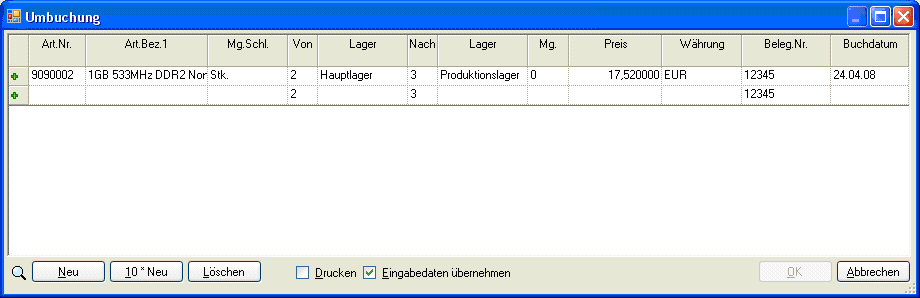 wenn nach der Lagerumbuchungen eine Lagerbewegungsliste gedruckt werden