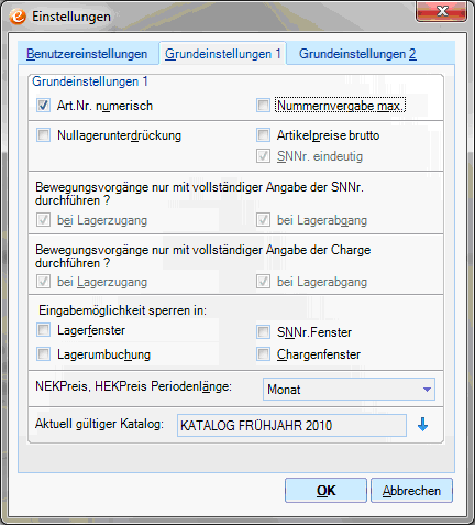 In der Feldgruppe Grundeinstellungen 1 sind folgende Funktionen enthalten: