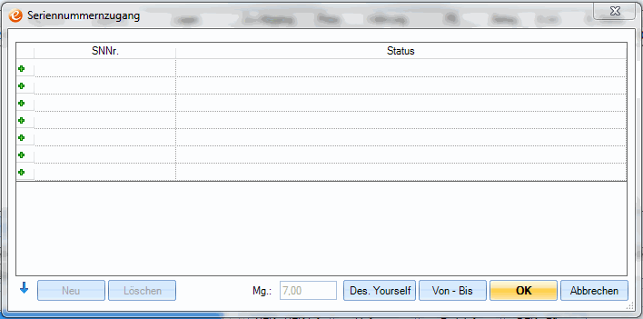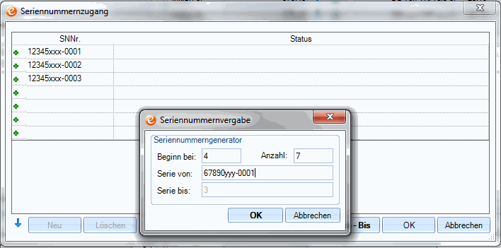 Beim Klick auf diesen Button öffnet sich das Fenster Seriennummernvergabe.