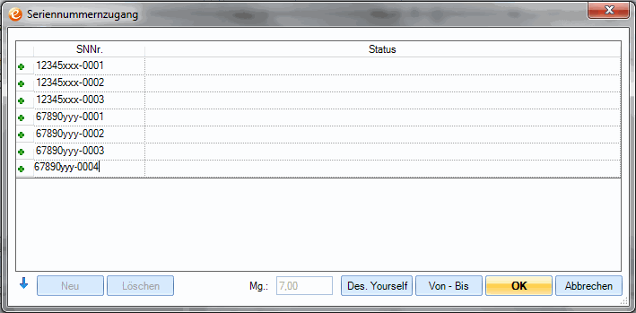 Mit dem Klick auf OK werden die Seriennummern übernommen.