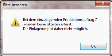 Ist ein Eintrag noch nicht erfolgt, wird bei der Einlagerung diese Meldung angezeigt: